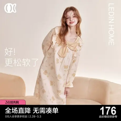 乐町睡眠熊睡裙女秋长袖三层纱全棉可外穿可爱连衣裙纯棉家居服
