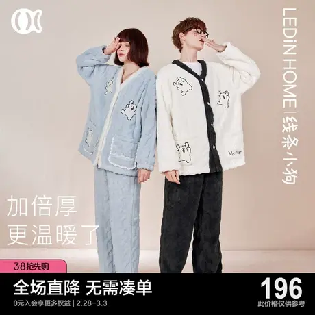 乐町线条小狗联名情侣睡衣套装女冬款半边绒保暖可外穿可爱家居服
